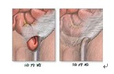 对于另一类不能回纳的疝气,叫“嵌顿疝”,此时会疼痛加剧,肿块紧张发硬。如果嵌顿的时间较长,千万不要盲目地把肿块推回腹腔。因为被嵌顿的肠管可能已发生缺血坏死,假如强行推回到腹腔,则有可能发生肠坏死、穿孔的危险。对于这类病人应立即去医院治疗,不要存在侥幸心理,以免耽误治疗。对于反复出现疝气的病人,应选择适当的时机,通过手术修补来达到根治的目的。