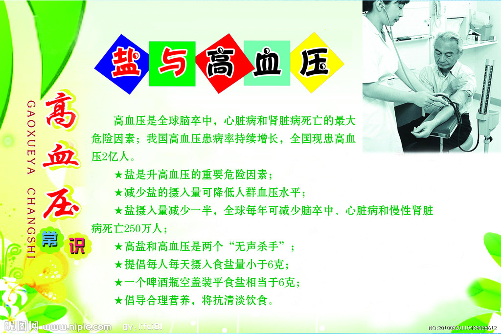 食盐在人体内含量过多,就会增加血容量和血液黏稠度,使血管收缩、血压升高。据调查,吃咸鱼、咸菜多的地方的人,心血管病的发病率高;吃盐多,高血压发病率也越高。患者应避免吃咸鱼、咸菜、黄酱、火腿等咸物。如果高血压病人出现心力衰竭、肾功能减退,浮肿、尿少、气短、咳喘等情况时,应该完全停止吃盐。
